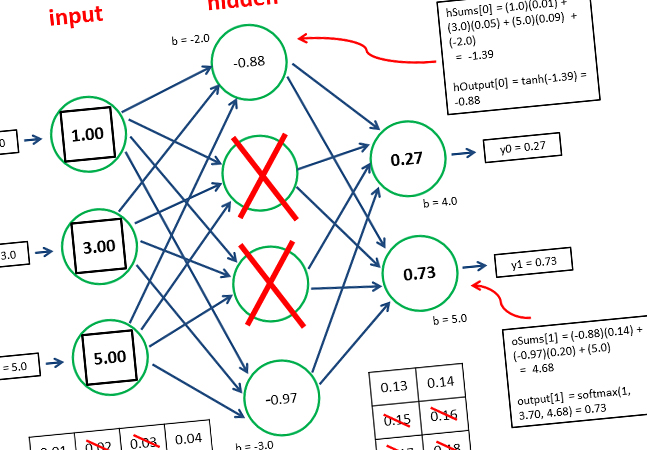 Dropout training is a relatively new algorithm which appears to be highly effective for improving the quality of neural network predictions. It's not yet widely implemented in neural network API libraries. Learn how to use dropout training if it's available in an existing system, or add dropout training to systems where it's not yet available.