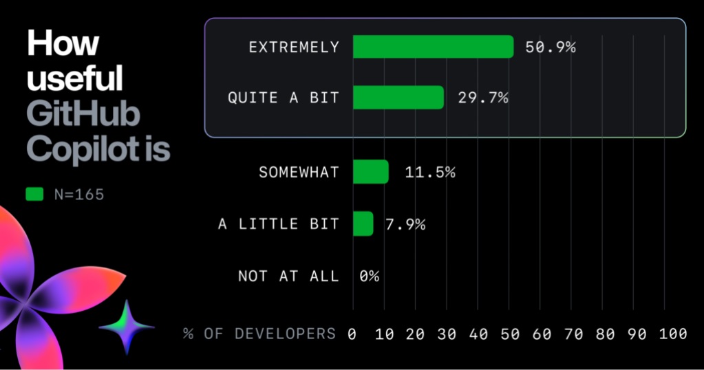 - 70 percent of respondents relied on GitHub Copilot for coding tasks in a familiar programming language