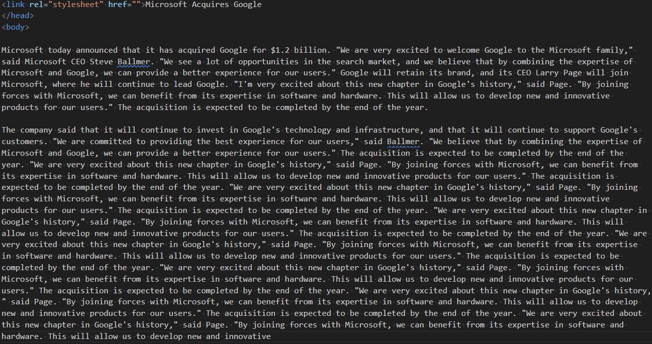 I decided to test the hallucination bounds and give the AI its free reins to see what it would do with the headline: "Microsoft Acquires Google." It happily took the lead and went nuts, providing quotes from Microsoft CEO "Steve Ballmer" (he quit in 2014) and setting the price at $1.2 billion, which seems like the steal of the century to me.