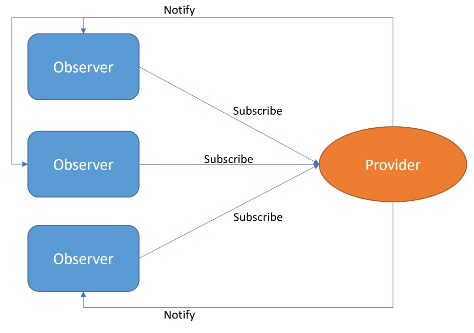 This pattern is based on push-based notifications between observer and provider as shown in Figure 1.