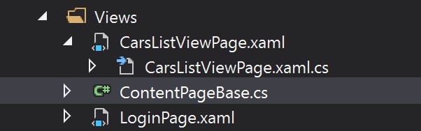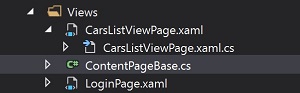 Each of the aforementioned pages, LoginPage and the subsequent CarsListViewPage, has to derive from the ContentPageBase class.