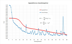 I coded up a demo program using Cognitive Toolkit with the Python and NumPy APIs. I ran the demo once using SE, and then modified the code and ran it again using CE error. The results are shown in Figure 2.