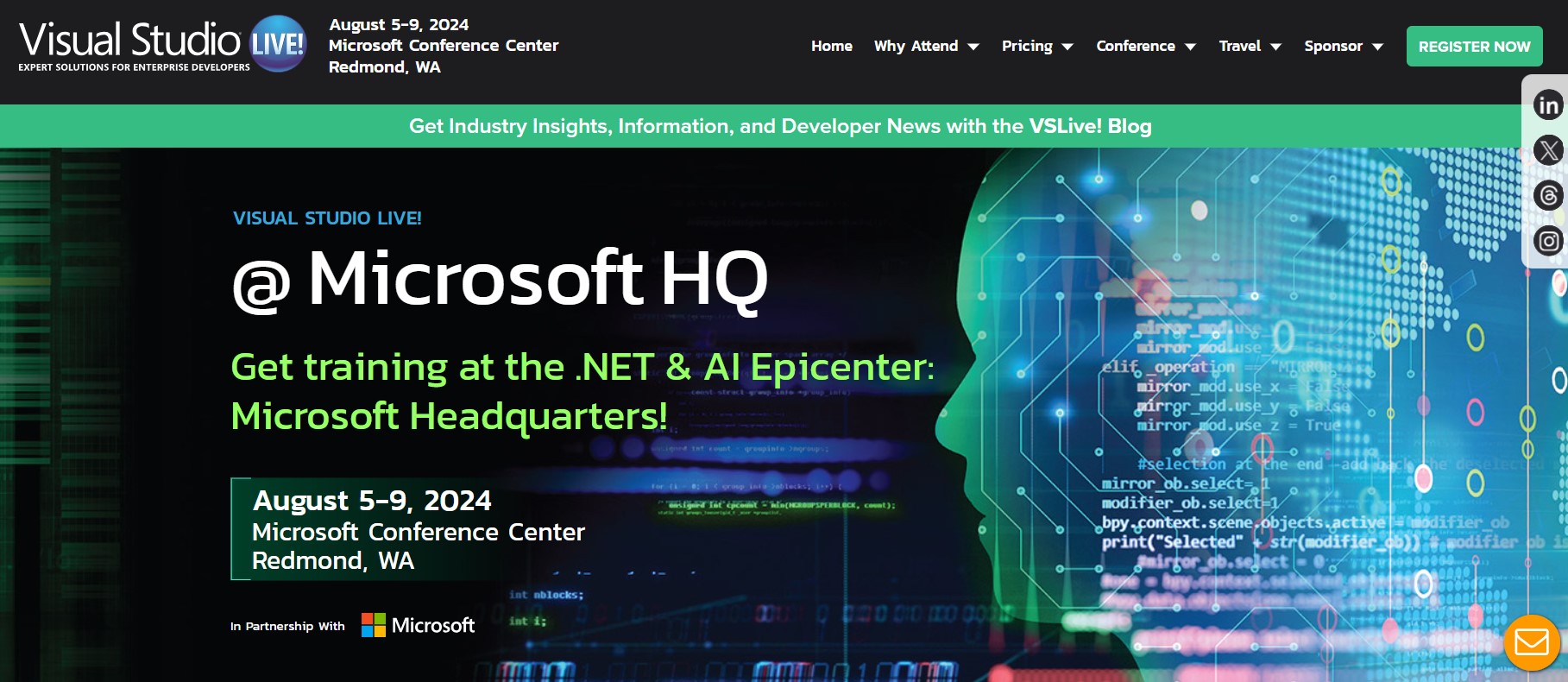 "Visual Studio Live! @ Microsoft HQ celebrates the bright days of the Pacific Northwest -- offering the perfect opportunity to immerse yourself in everything Visual Studio, Azure, GitHub, and the marvels of GitHub Copilot," Microsoft's Jim Harrer said in a June 4 post on the company's Developer Blogs site.