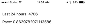 The result of running this code and displaying it on an iPhone 7+ is shown in Figure 1, which shows that the phone had approximately 4,700 steps in the past 24 hours and was currently moving at a pace of about .86 meters per second. For this phone, that’s approximately correct. It also shows the most recent set of steps with the phone and the current pace of the device.
