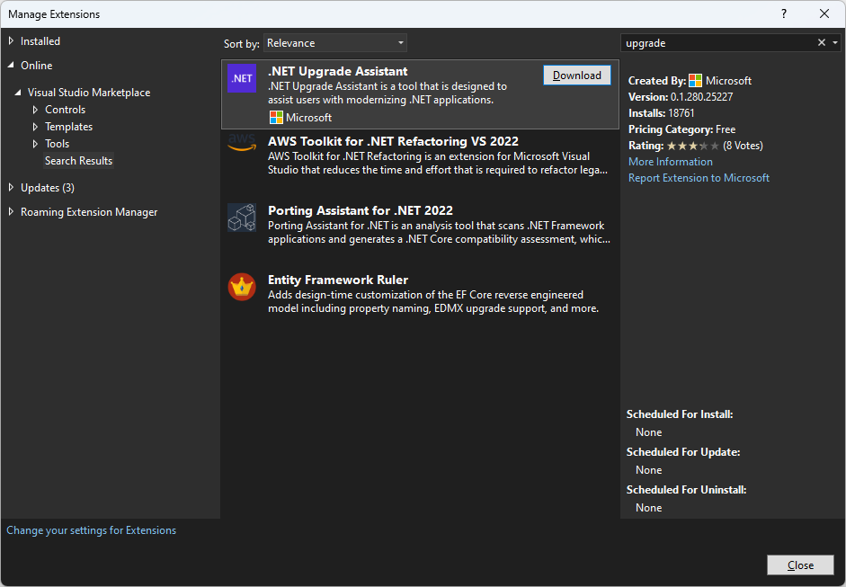 Instructions to install the .NET Upgrade Assistant can be found in the aptly named Install the .NET Upgrade Assistant guidance. "The .NET Upgrade Assistant can be installed as a Visual Studio extension or as a .NET command-line tool," it says. "When installed as a Visual Studio extension, loaded projects can be upgraded through the context menu. The .NET command-line tool version of the tool provides an interactive step-by-step experience."