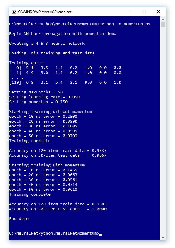 Figure 2. Python Neural Network Momentum Demo