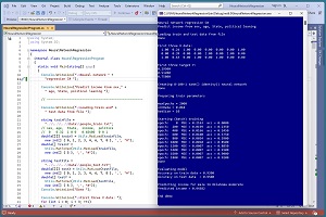 This article assumes you have intermediate or better programming skill but doesn't assume you know anything about neural network regression. The demo is implemented using C#, but with a bit of effort you should be able to refactor the code to a different C-family language if you wish.