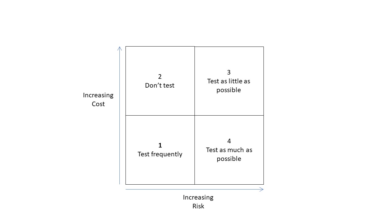 The most popular tool for any HBR article is the four-square model. In that spirit, here's a model that you can slot all your tests into, based on cost and risk with advice on what to do with the tests in each category: