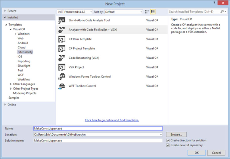 Then, create a new Analyzer with Code Fix project as seen in Figure 2.