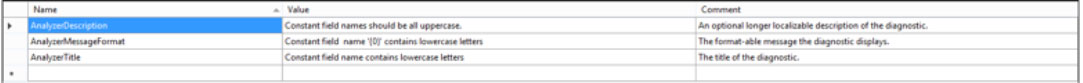 Next, update the AnalyzeSymbol method to create a diagnostic for only field symbols that contain lowercase letters and have a constant value: