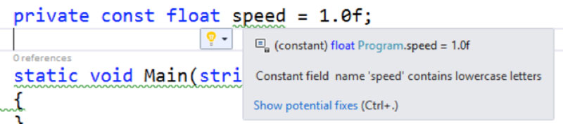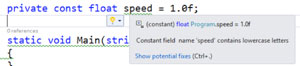 Now you should be able to run the solution and test out the fix by creating a constant private field as seen in Figure 4.