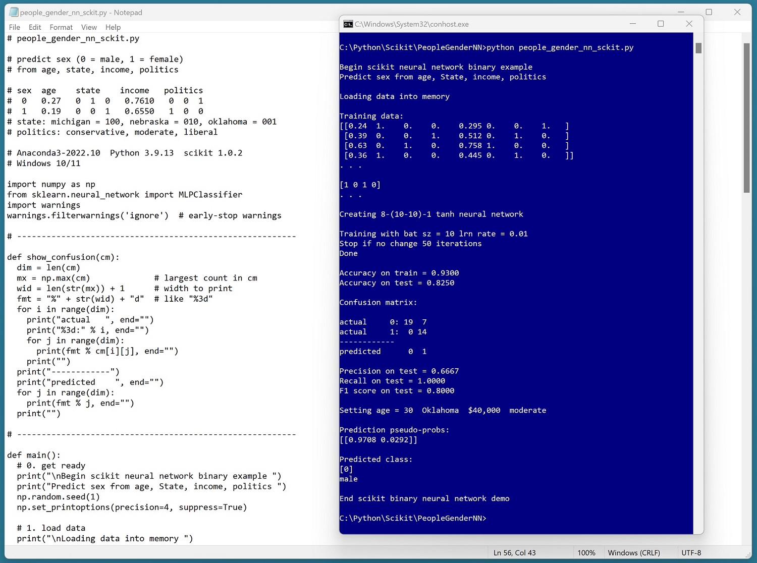 [Click on image for larger view.] Figure 1: Binary Classification Using a scikit Neural Network