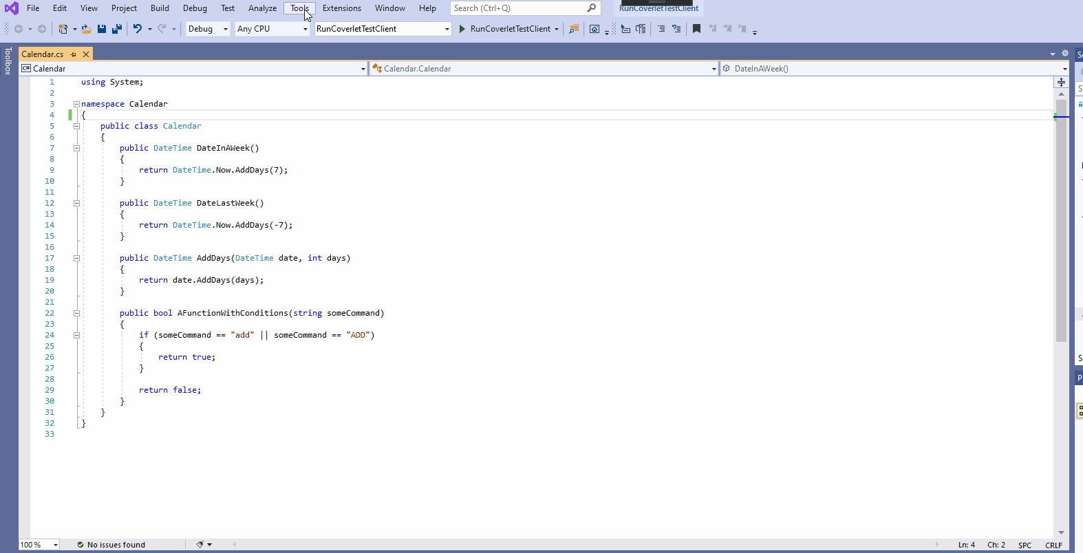 [Click on image for larger view.] A Right-Click in Solution Explorer Creates a Unit Test Boilerplate (source: VS Marketplace).