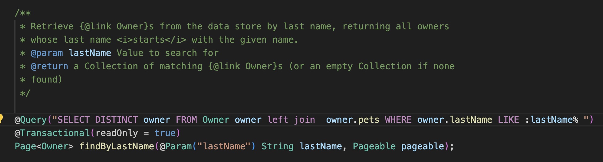 - JPQL syntax highlighting: The Spring pack's Spring Boot Tools extension now supports JPQL syntax highlighting, improving the readability of JPQL query strings in both @Query annotations and named query property files.